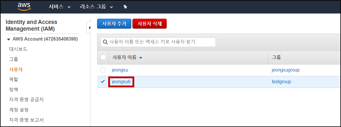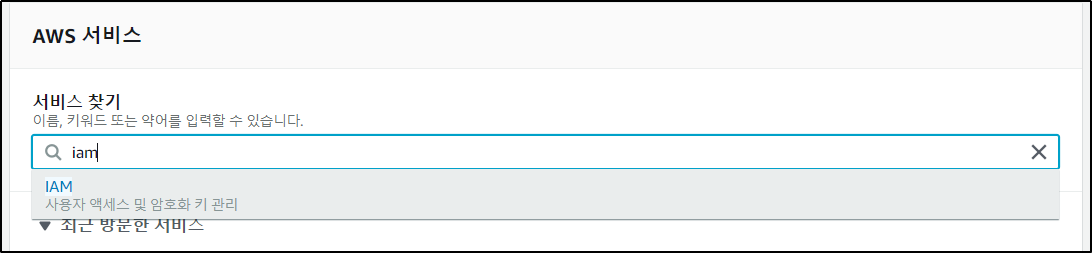 aws 홈으로 돌아와 이번엔 iam를 검색하여 이동해 줍니다.