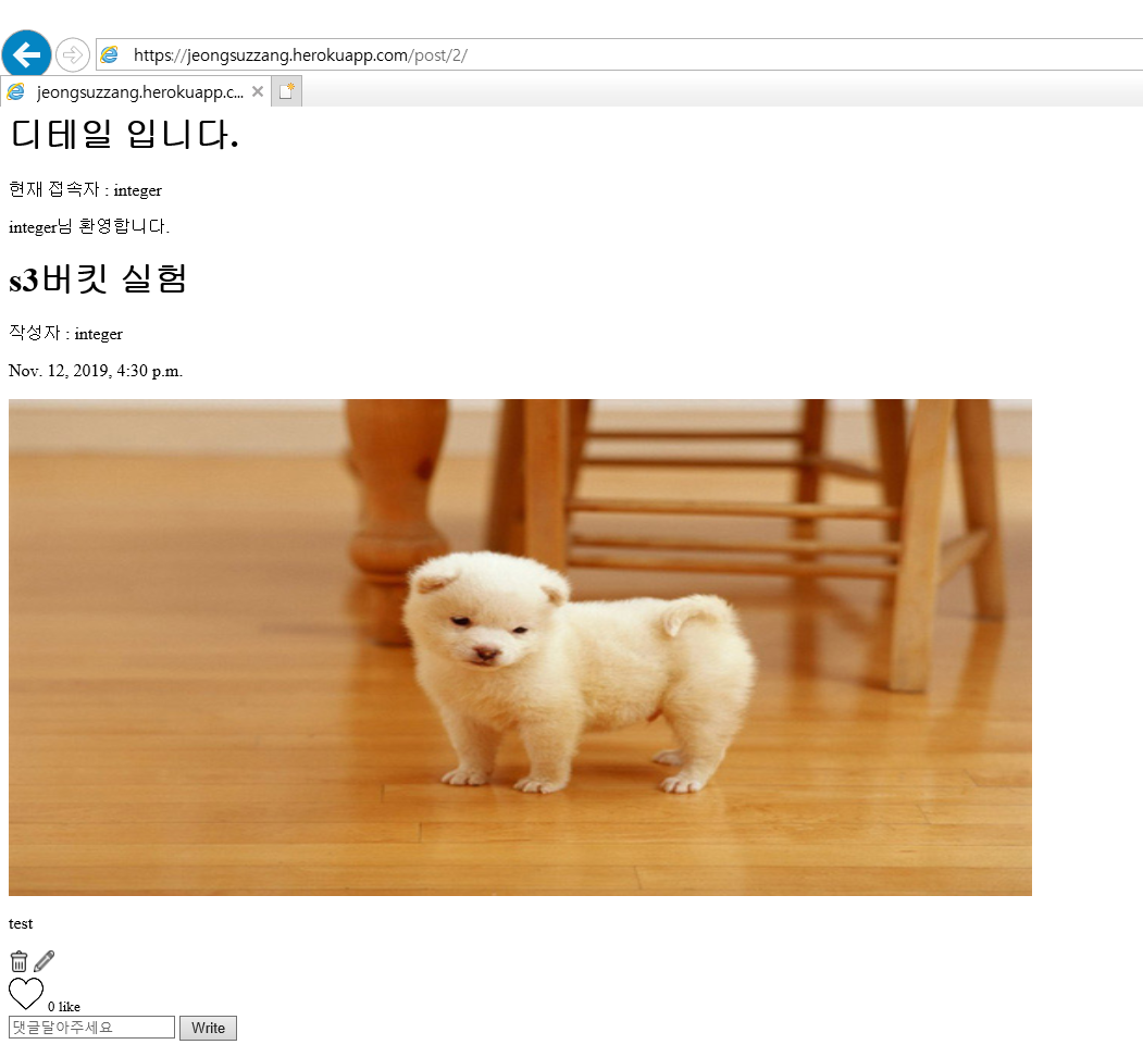 이제 heroku서버에서도 media파일이 잘 올라가나 확인해 봅니다.
