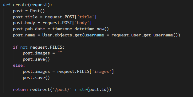views.py의 create 함수를 수정해주어야 합니다.