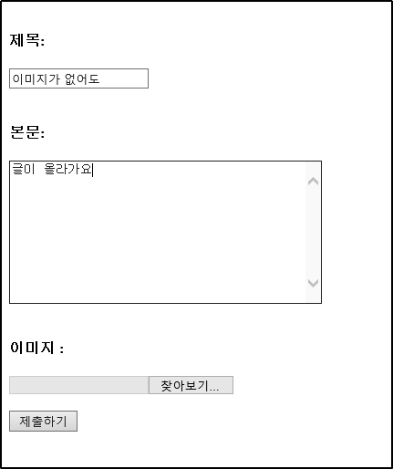 현재 project는 이미지를 올리지 않으면 오류가 납니다. 이 부분을 수정하겠습니다.