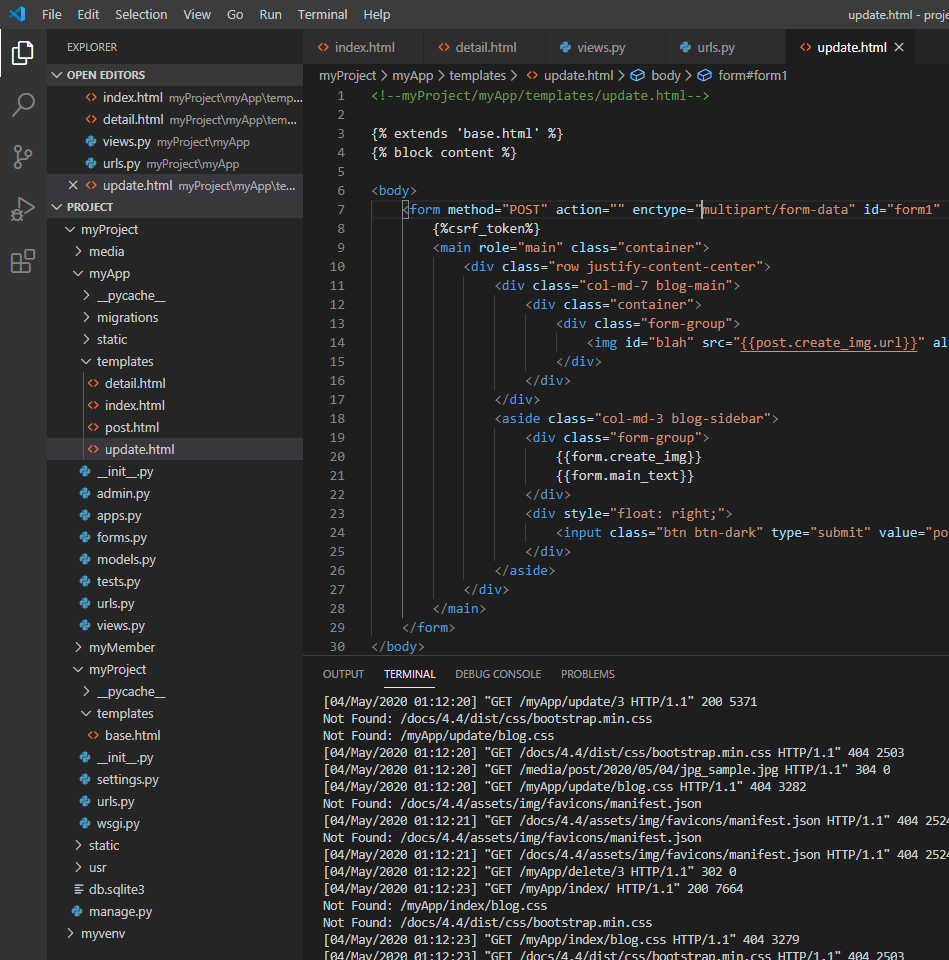| Django로 홈페이지 만들기 - #7 mypage, userpage, profile update (0) | 2020.05.04 |