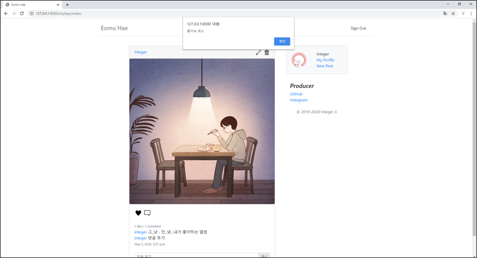 | Django로 홈페이지 만들기 - #6 댓글 쓰기, 댓글 삭제 (0) | 2020.05.04 |