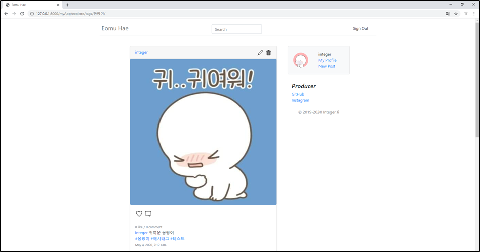 | Django로 홈페이지 만들기 - #10 multi-hashtag (0) | 2020.05.10 |