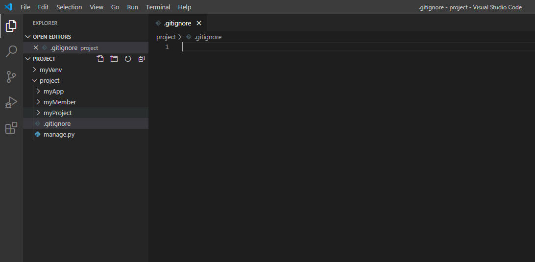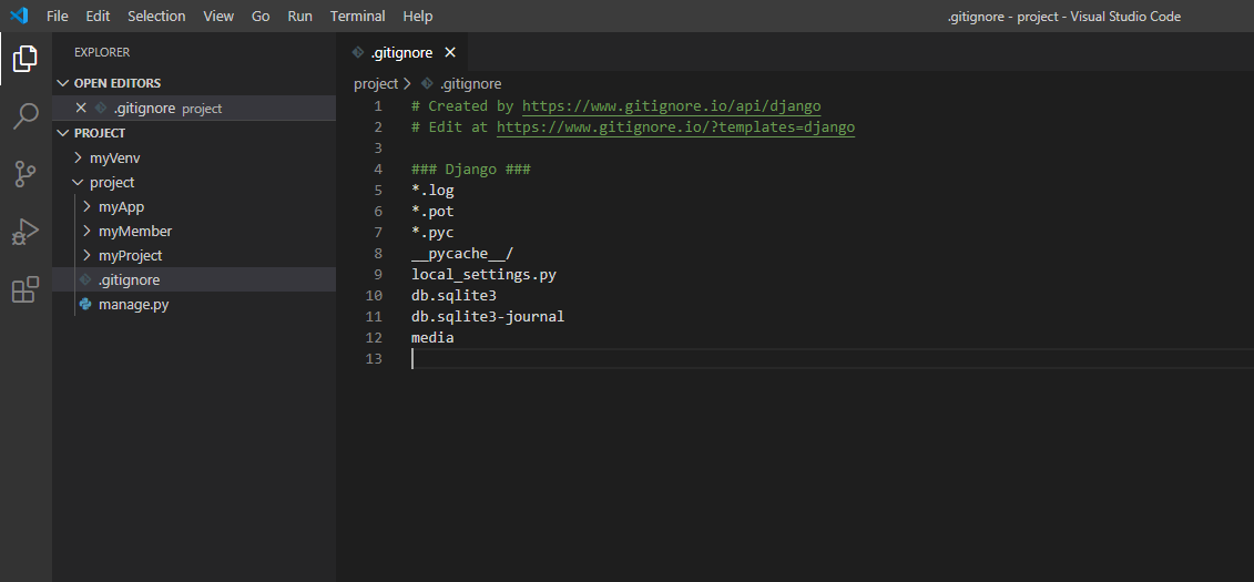 manage.py와 동일한 위치에 .gitignore 파일 생성