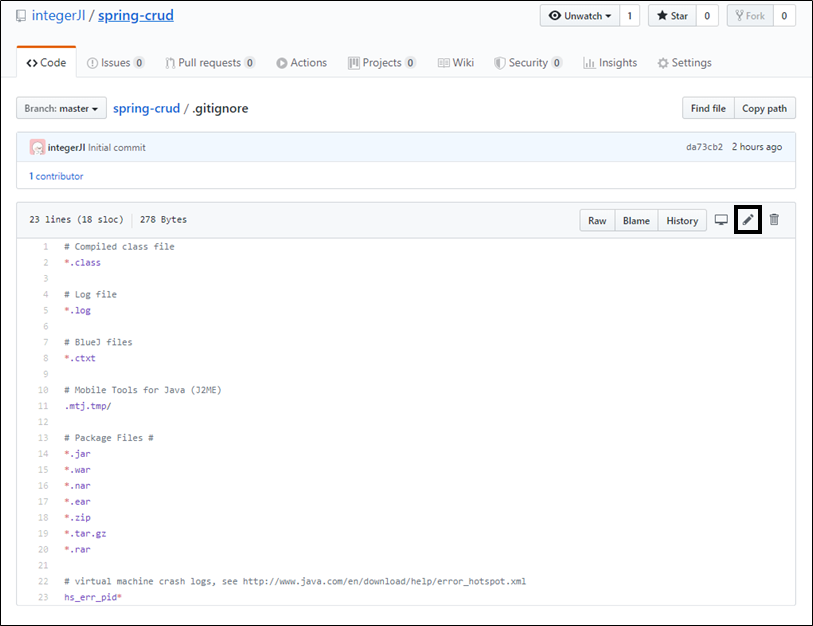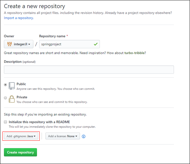 git 저장소를 만들때에는 Add .gitignore:java라고 꼭 명시해줘야 합니다.