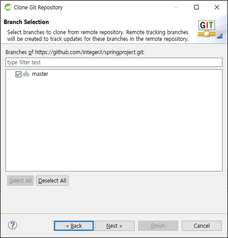 master가 체크되어있는 걸 확인 후 Next를 눌러줍니다.