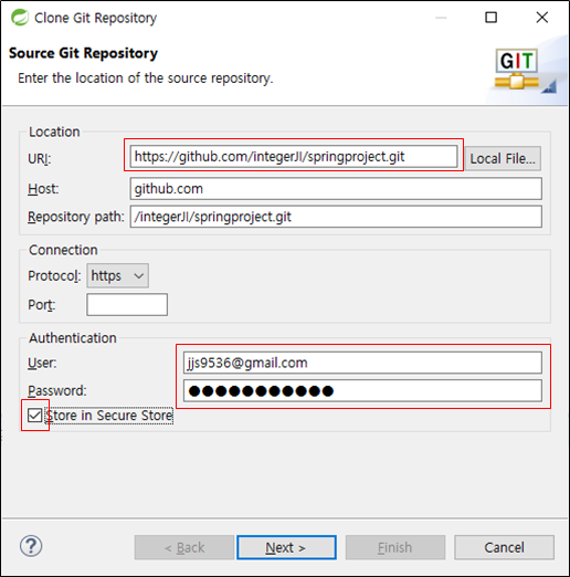 [spring 기초] sts와 git 연결하기, git push, git commit, git pull