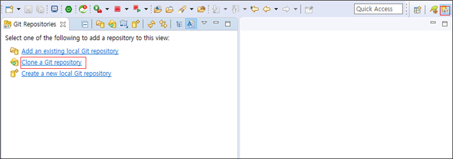 Git을 Open을 해주면 좌측에 Clone a Git repository 클릭