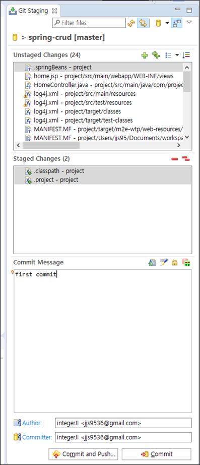 첫 commit을 할 때 staged changes에 파일이 다 올라가있을텐데