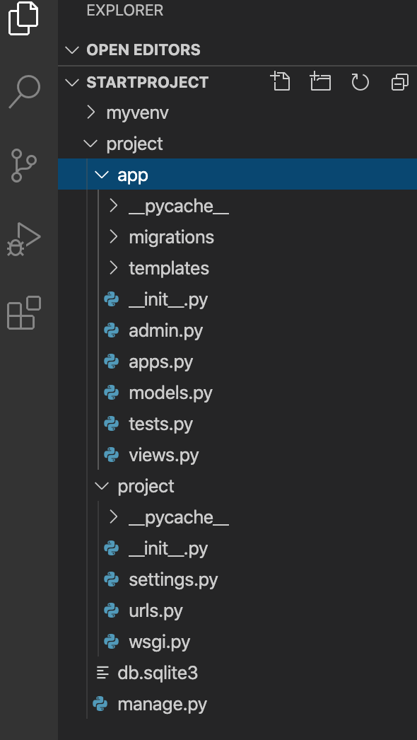 디폴트 vscode에 폴더 불러오기 + bash 터미널 window >>> python -m venv myvenv mac >>> python3 -m venv myvenv mac은 python2가 기본으로 깔려있어 python3로 따로 설치 * 명령어 바꿧다면 python으로 해도..