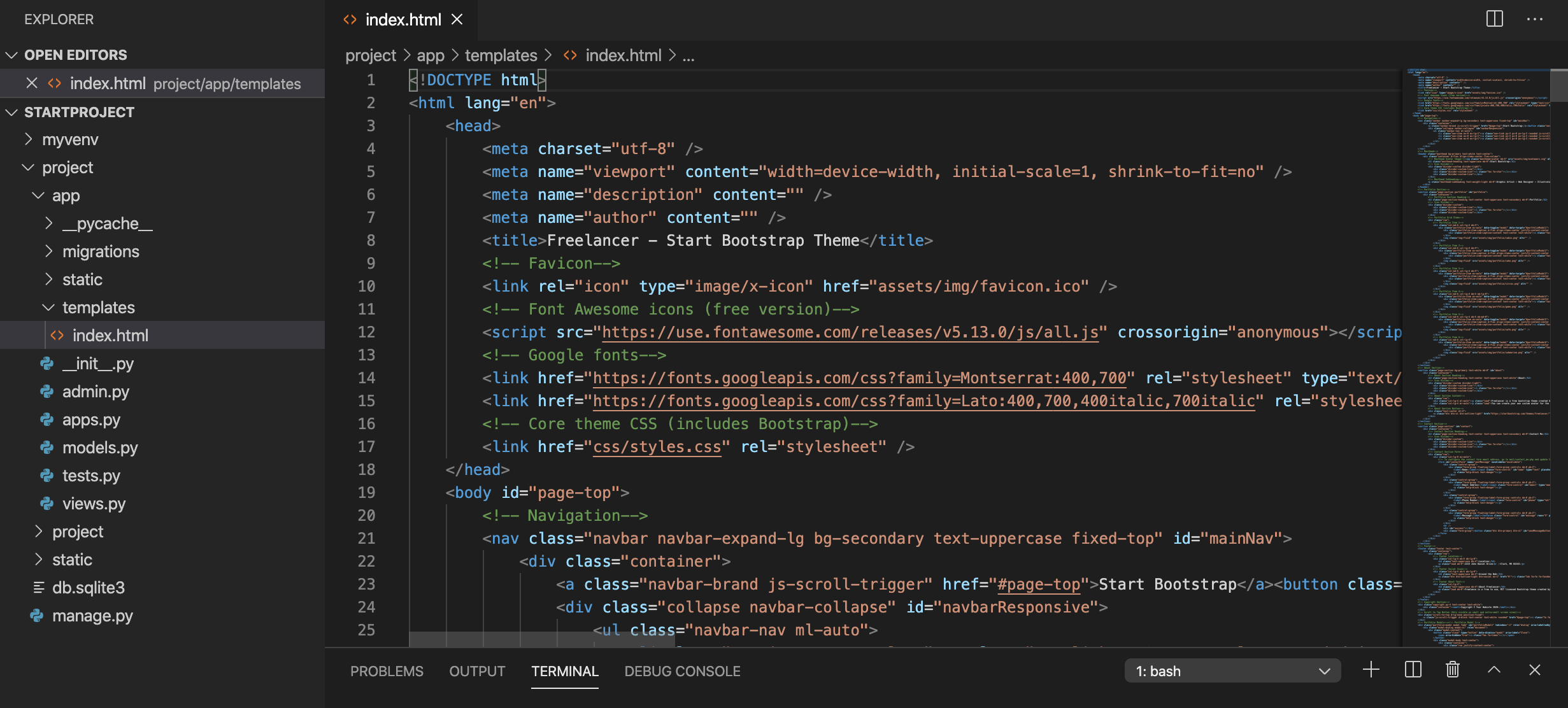 그리고 app/templates 밑에 기존의 index.html을 바꿔치기 해줍니다.