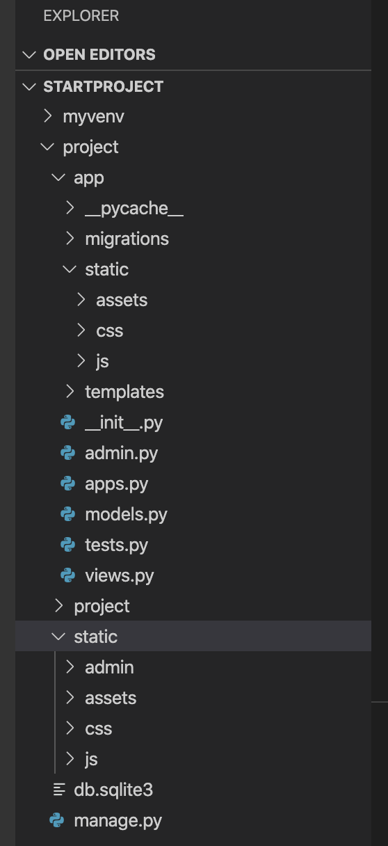 이제 해당하는 파일들을 저희 프로젝트로 옮기기 전에 static 설정을 해줍니다.