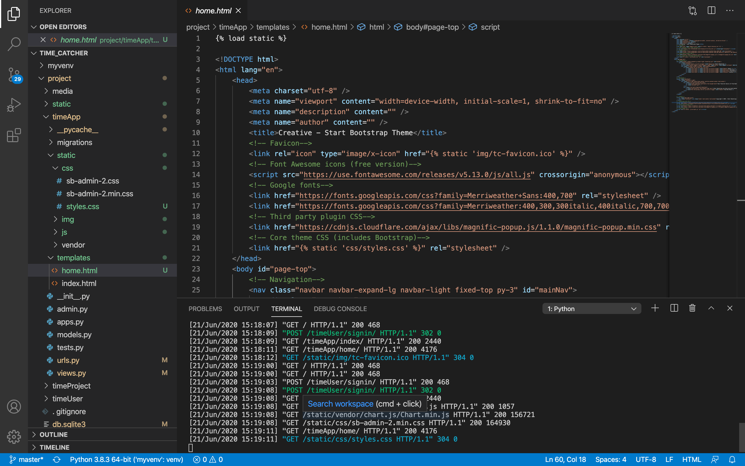 해당 파일을 home라는 html에 따로 만들어 확인하였습니다.