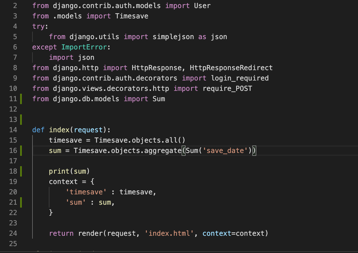 views.py에서 Sum함수를 가져온다.