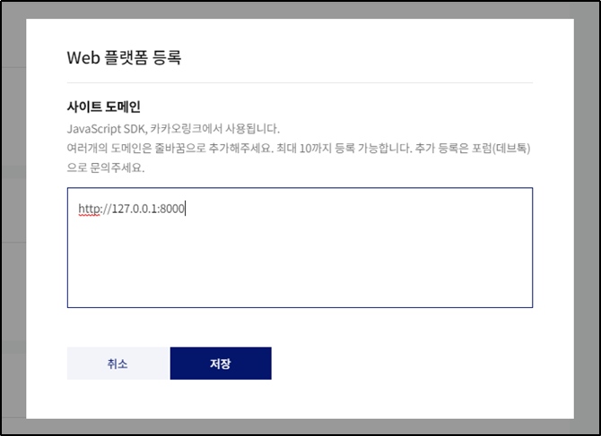 저는 로컬에서 돌릴 예정으로 http://127.0.0.1:8000를 넣어주엇습니다.