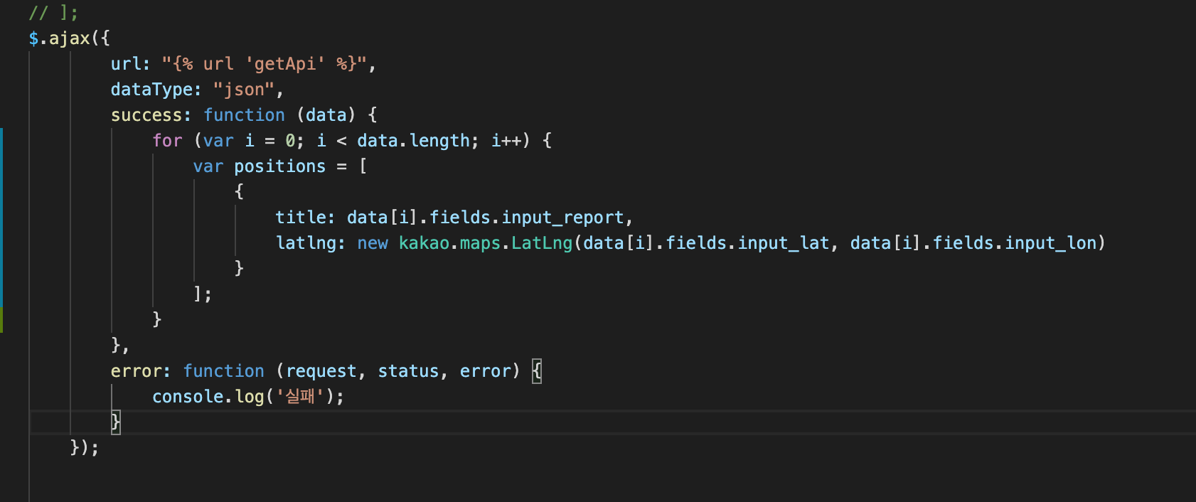 알고보니 lat와 lon의 자리를 바꿔 넣었던 것
