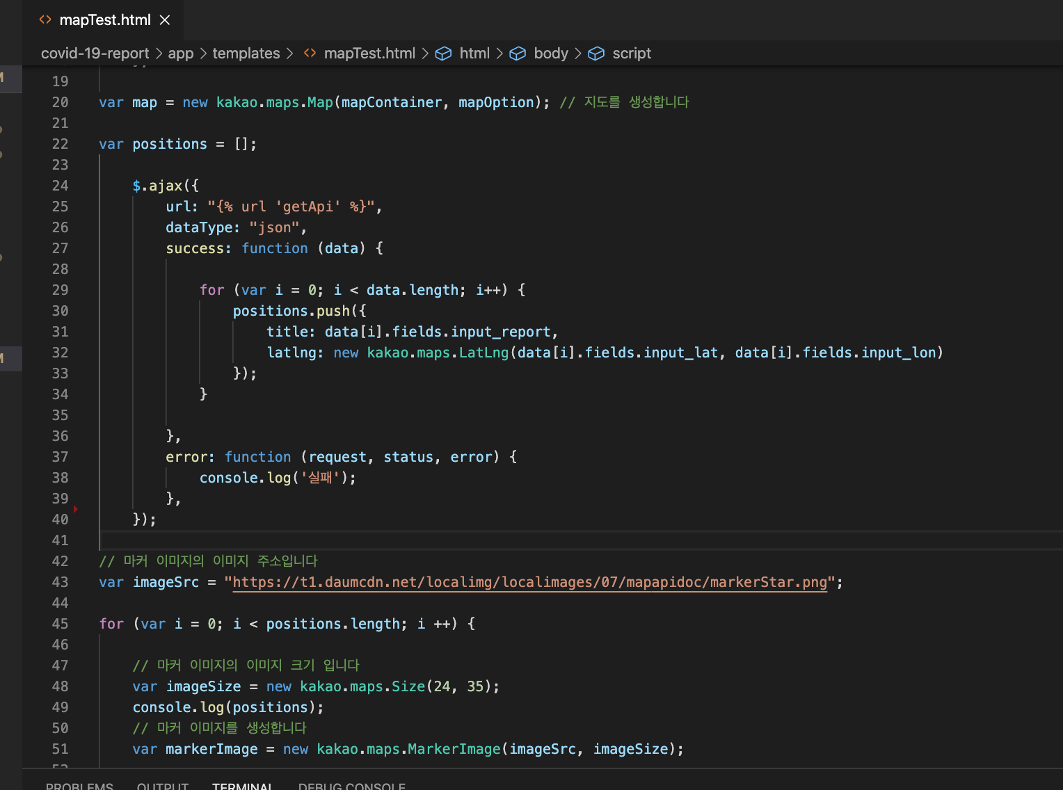 하지만 ajax안에서만 배열이 추가 되고 막상 선언된 positions에는 추가되지 않습니다.