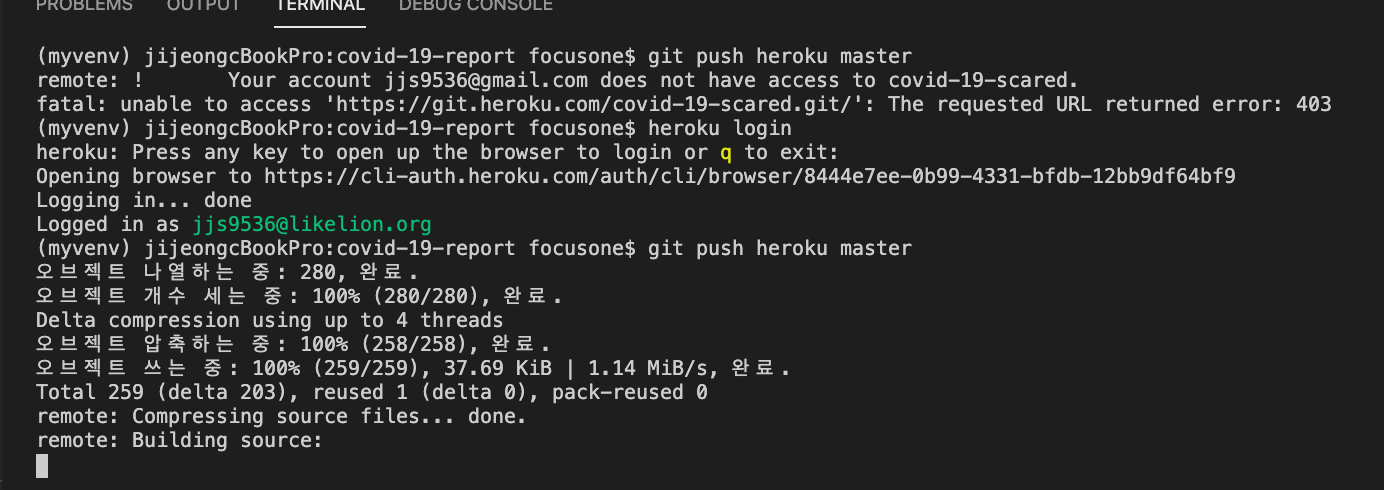 fatal: unable to access 'https://git.heroku.com/covid-19-scared.git/': The requested URL returned error: 403