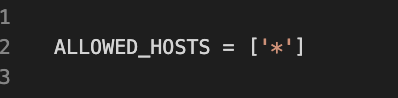 ALLOWED_HOSTS의 설정을 '*'로 설정해줍니다.