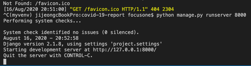 포트번호를 8000번으로 하여 서버를 실행시켜 줍니다.