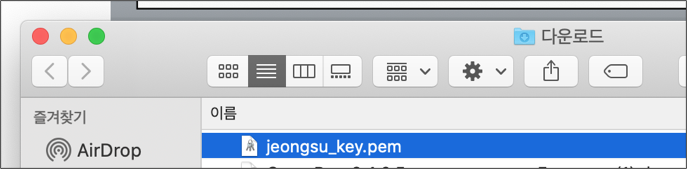 키 페어 이름을 입력 후 키 페어 다운로드를 눌러 다운로드한 *.pem 파일을 확인합니다.