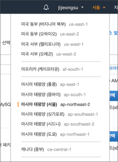 해당 사이트에서 aws 회원가입을 진행해 준 뒤 자신의 지역을 확인해 줍니다.