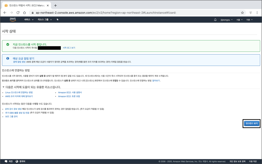 짠 새로운 인스턴스가 생성되었고 실행 중에 있습니다.