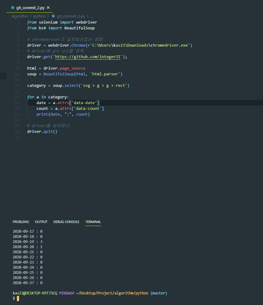 webdriver을 이용해 자신의 "chromedriver.exe"를 실행시켜 줍니다.
