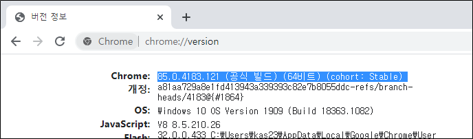 86, 85, 84버전이 있으며 자신이 설치한 크롬 버전과 동일한 버전을 다운받아 줍니다.