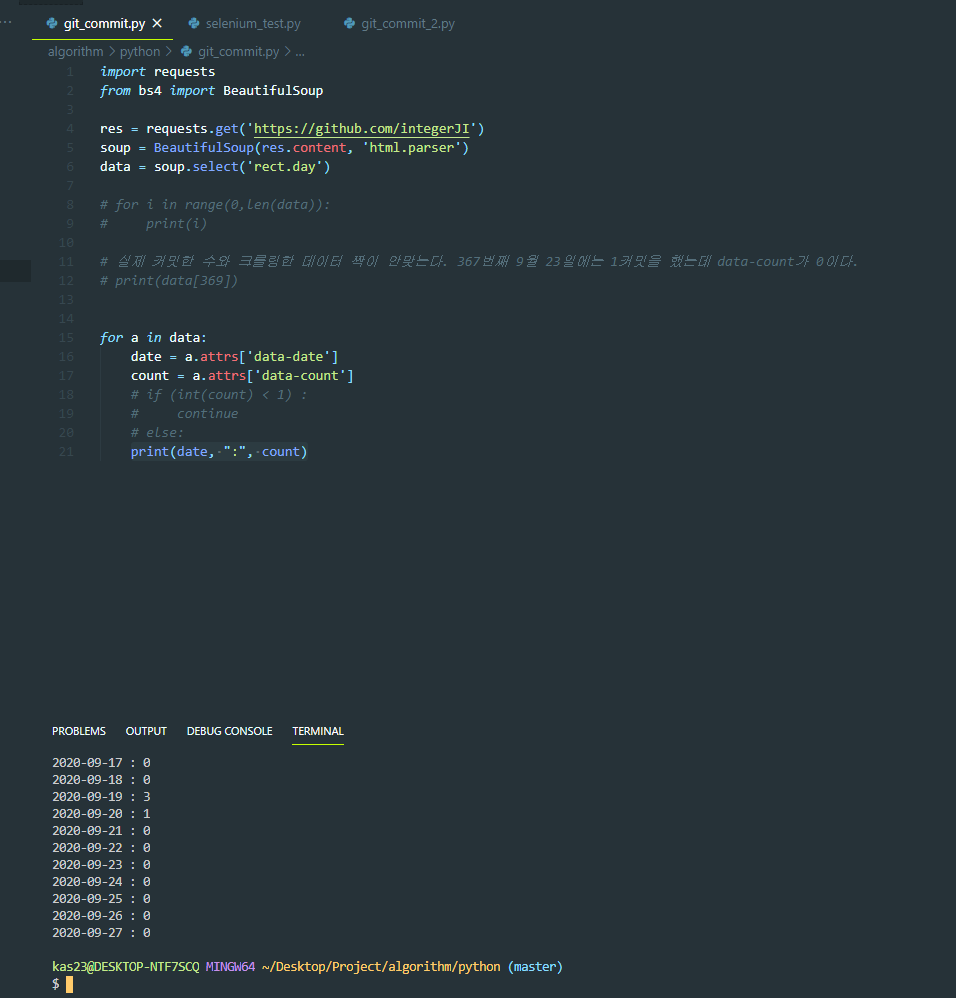 github에서 그날 커밋한 data-count가 0일 경우 알람을 보내주는 기능을 개발하는 중