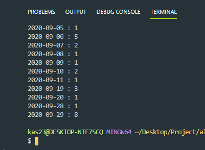 github에 하루에 커밋한 날짜를 가져와 데이터를 뽑아내었지만