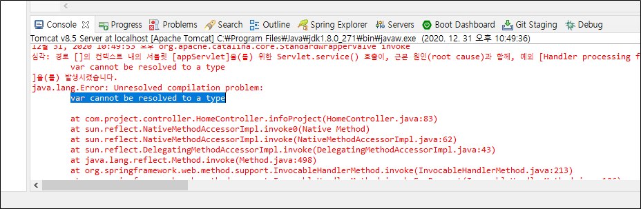 Java Spring 프로젝트를 진행하면서 생긴 에러이다.