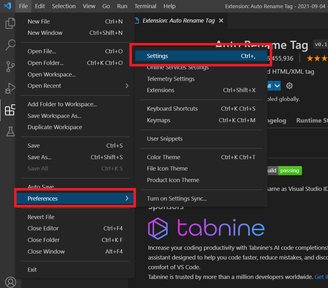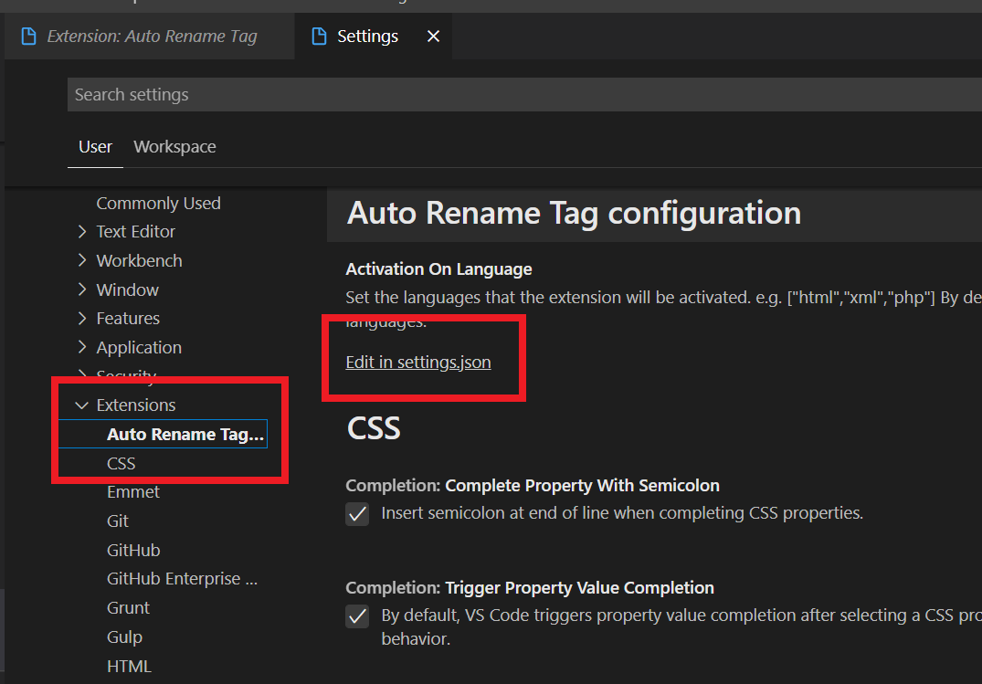 이제 Extensions > Edit in settings.json을 눌러 설정으로 진입합니다.