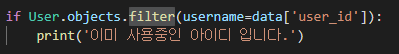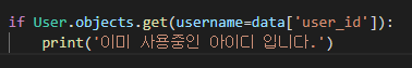 하지만 User 모델에 request 받은 user_id가 없으니 당연히 get을 이용해 값을 가져올 수 없다.