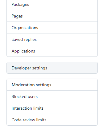 Settings을 누른 뒤 좌측 메뉴 중 Developer settings를 눌러줍니다.