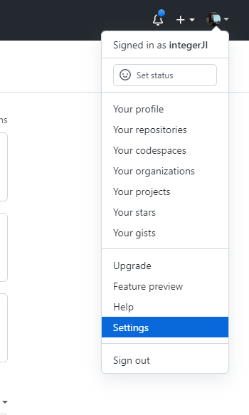 git hub 좌측 상단의 프로필을 눌러 Settings를 들어가 줍니다.