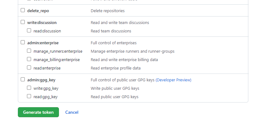하단의 Generate token을 눌러 토큰을 생성해 줍니다.