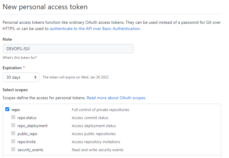우측 상단의 Generate new token 클릭