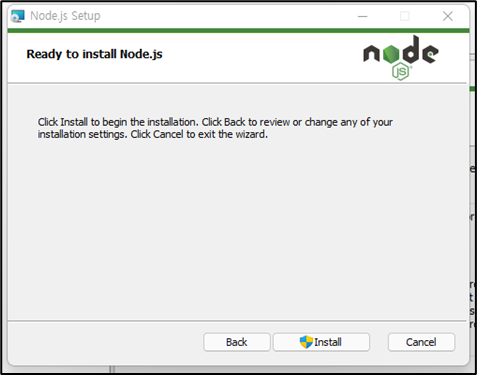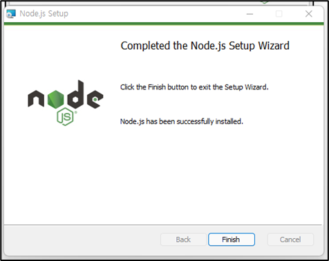 홈페이지에서 받은 v16.15.0 버전으로 Node.js가 설치된 것을 볼 수 있습니다.