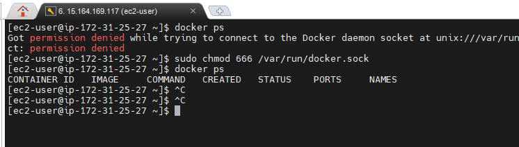 sudo chmod 666 /var/run/docker.sock