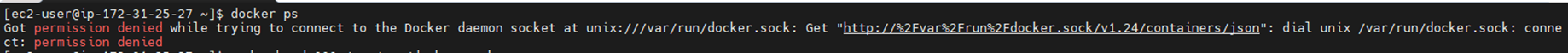 docker 명령어를 수행하며 docker.sock에 대한 권한이 없어 발생한 문제입니다.