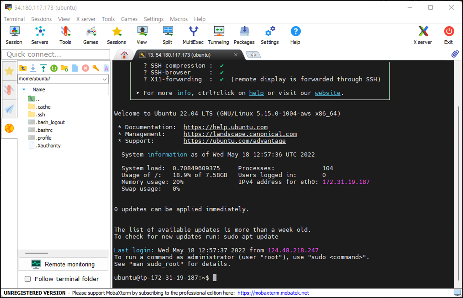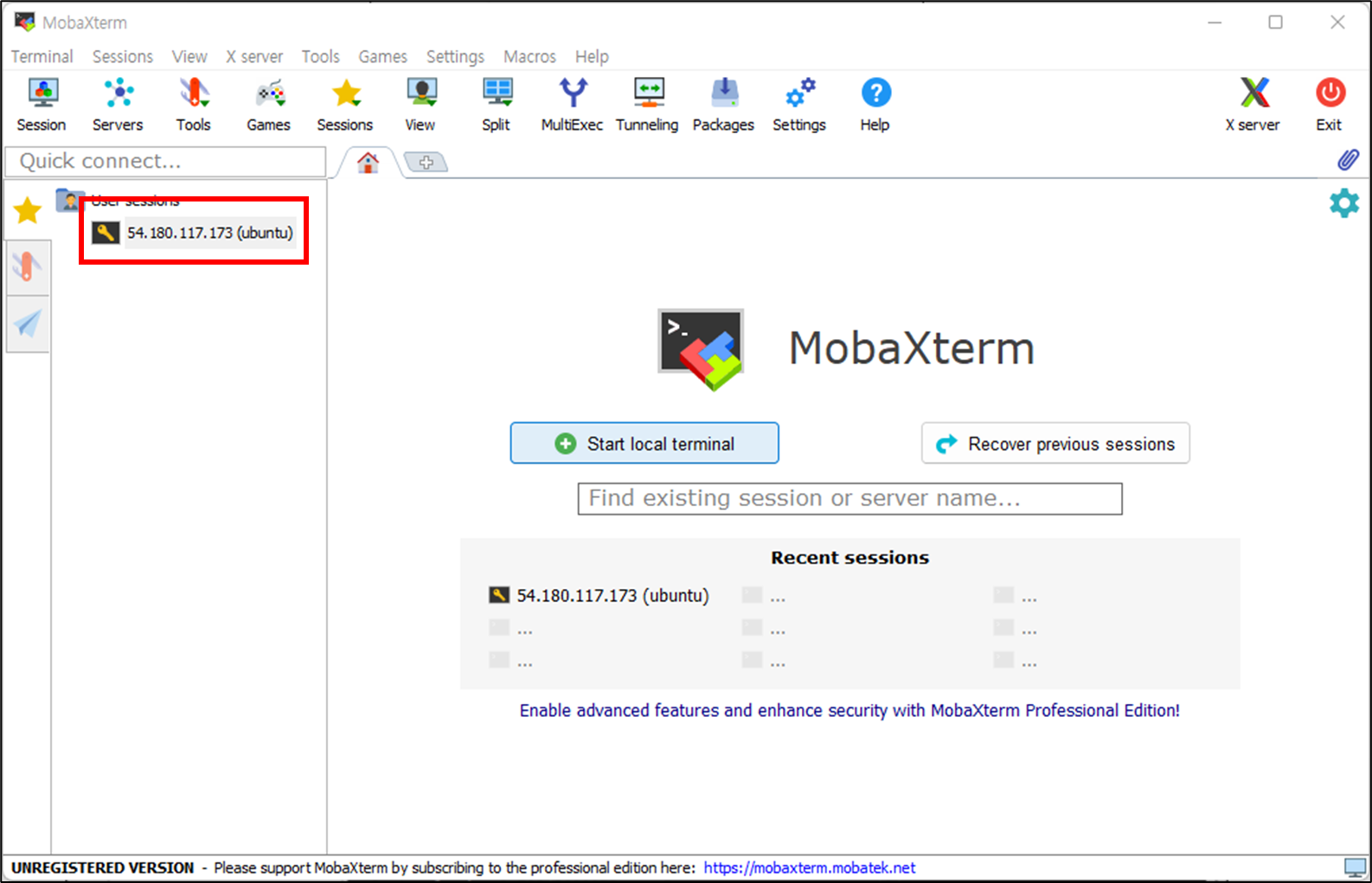 모바엑스텀(MobaXterm) 설치하기 : https://integer-ji.tistory.com/374