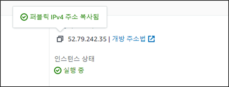 2. Aws Ec2의 인스턴스를 클릭하면 하단에 상세 정보가 나옵니다. 그중 "퍼블릭 IPv4 주소"를 넣어주세요