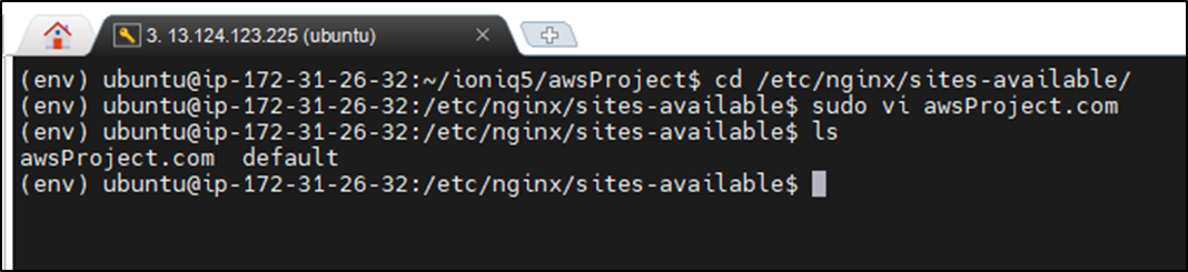 sudo ln -s /etc/nginx/sites-available/awsProject.com default