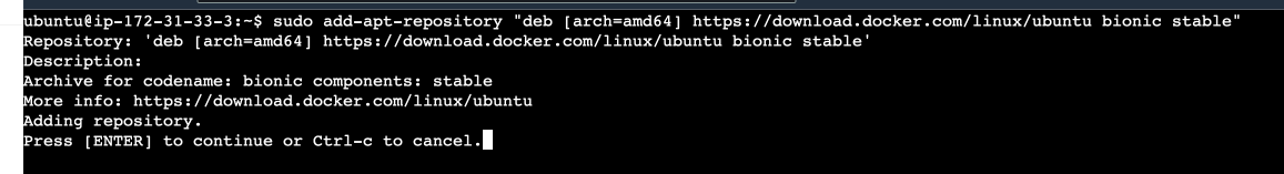 sudo add-apt-repository "deb [arch=amd64] https://download.docker.com/linux/ubuntu bionic stable"