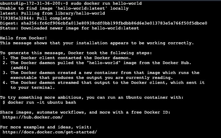 sudo docker run hello-world