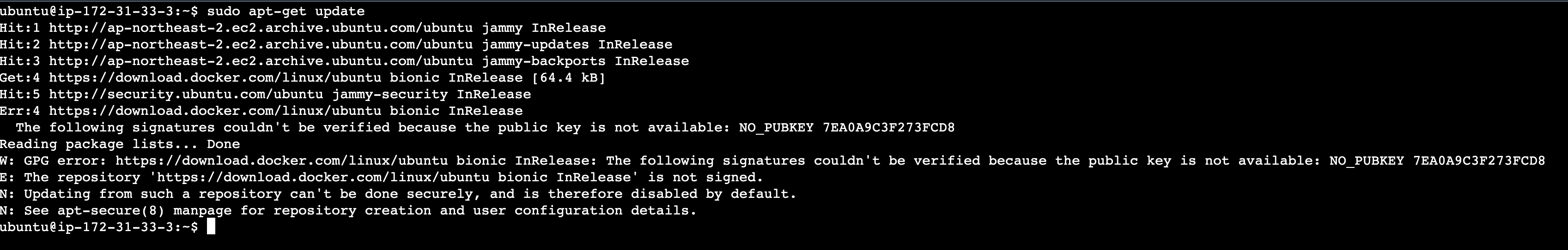 Hit:1 http://ap-northeast-2.ec2.archive.ubuntu.com/ubuntu jammy InRelease Hit:2 http://ap-northeast-2.ec2.archive.ubuntu.com/ubuntu jammy-updates InRelease Hit:3 http://ap-northeast-2.ec2.archive.ubuntu.com/ubuntu jammy-backports InRelease Hit:4 https://do