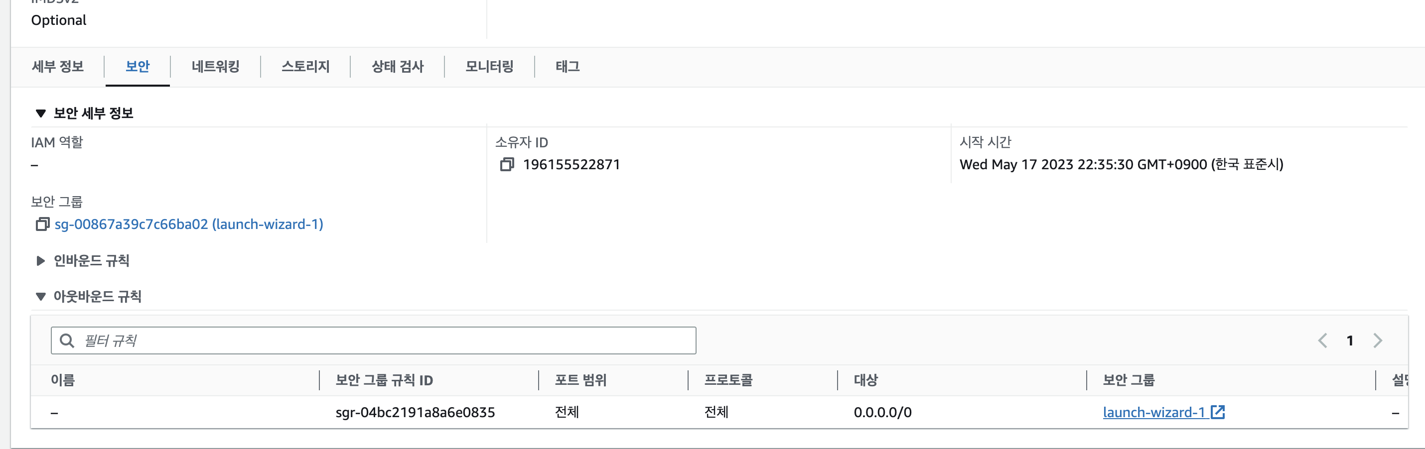 ec2에서 보안그룹의 규칙에서 인바운드 규칙을 추가해준다.