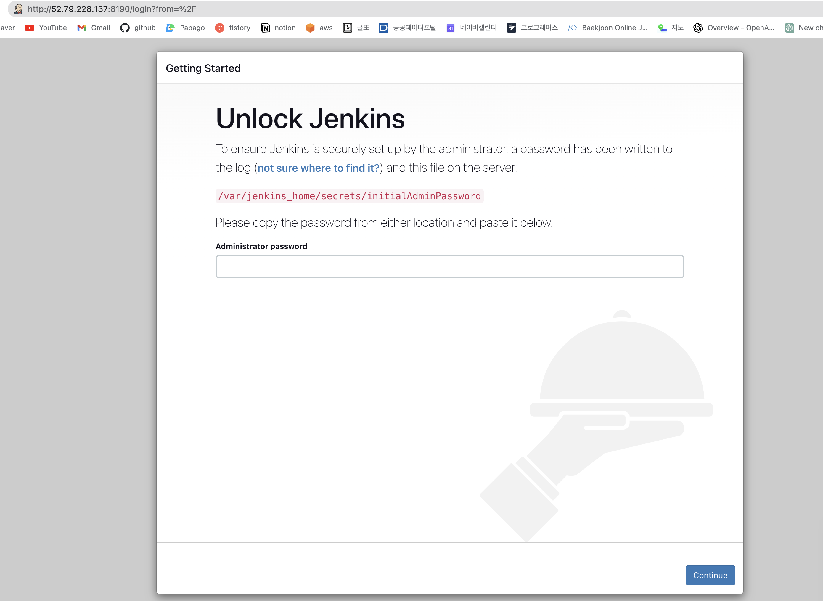 로그를 쭉 확인해 보면 Jenkins가 실행될 때 비밀번호를 알려준다.