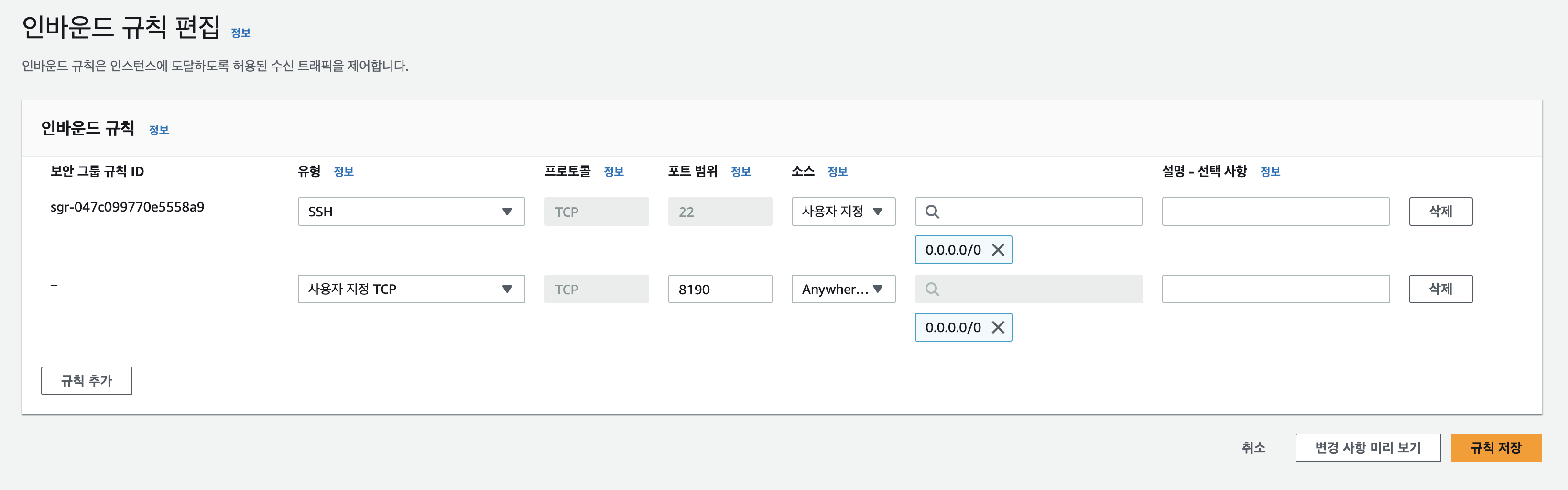 3. ec2 인스턴스의 인바운드 규칙 추가